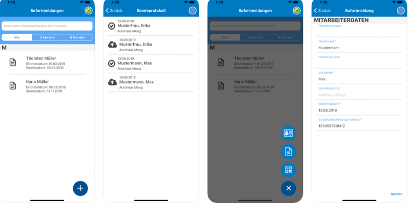 Sofortmeldedaten an die Annahmestelle der Rentenversicherung senden und